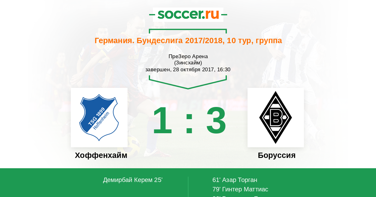 Протокол матча Хоффенхайм против Боруссия