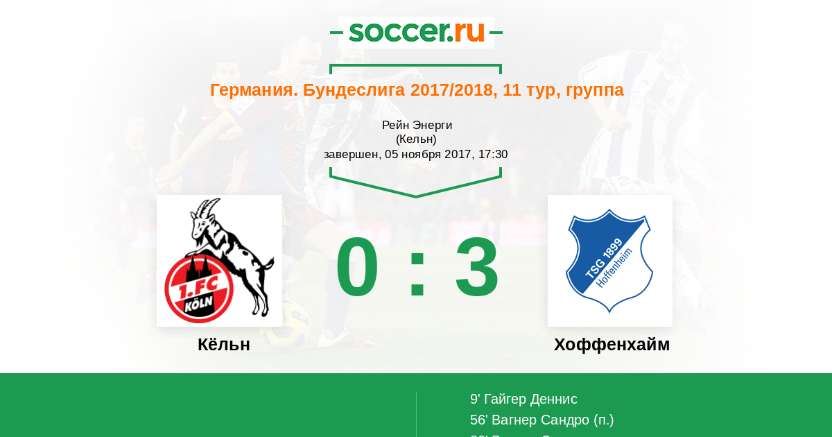Протокол матча Кёльн против Хоффенхайм