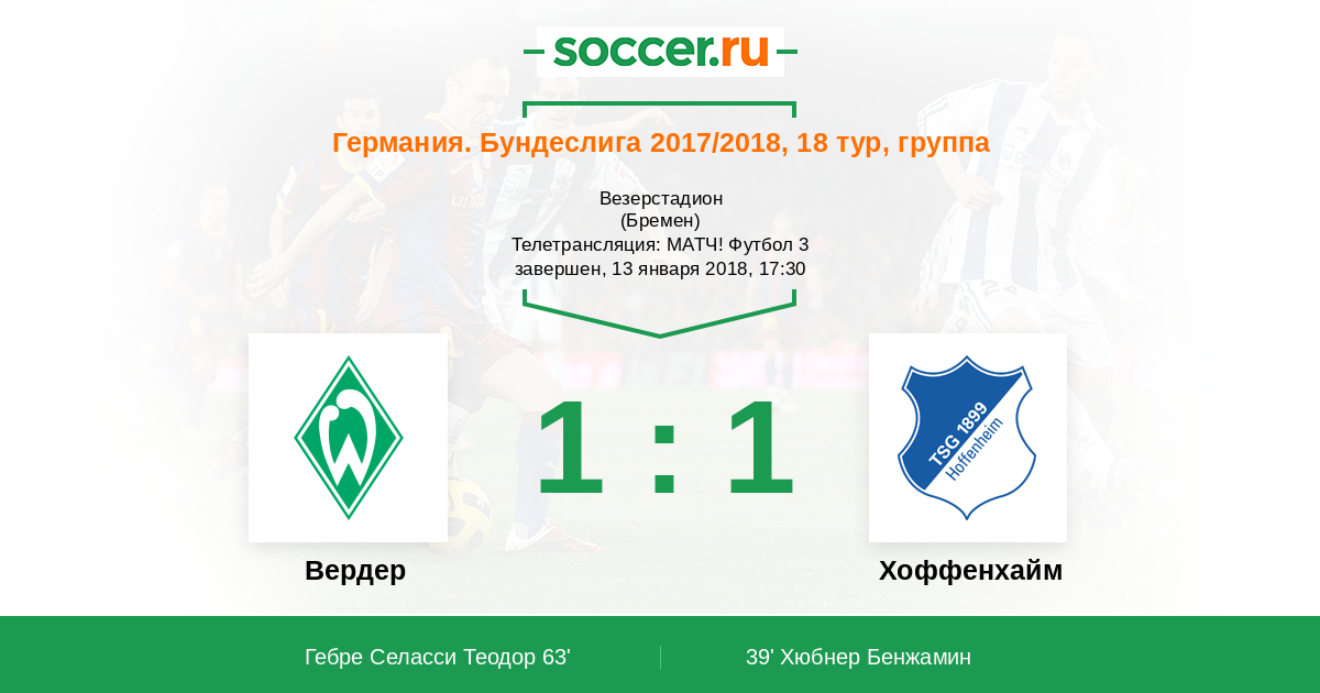 Протокол матча Вердер против Хоффенхайм