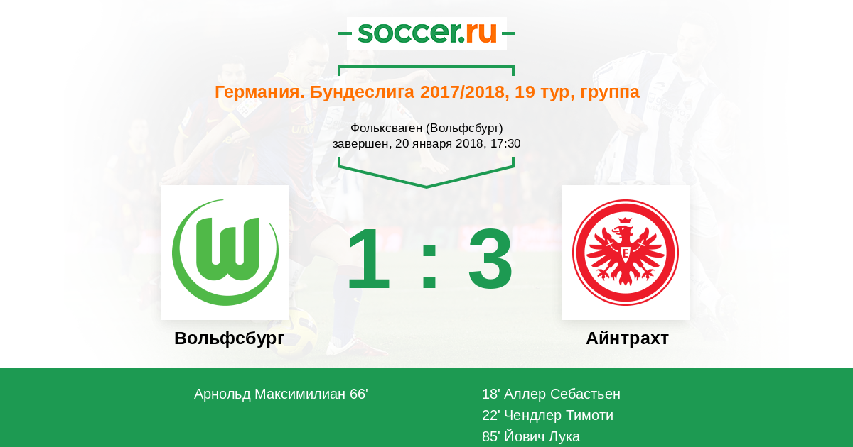 Протокол матча Вольфсбург против Айнтрахт