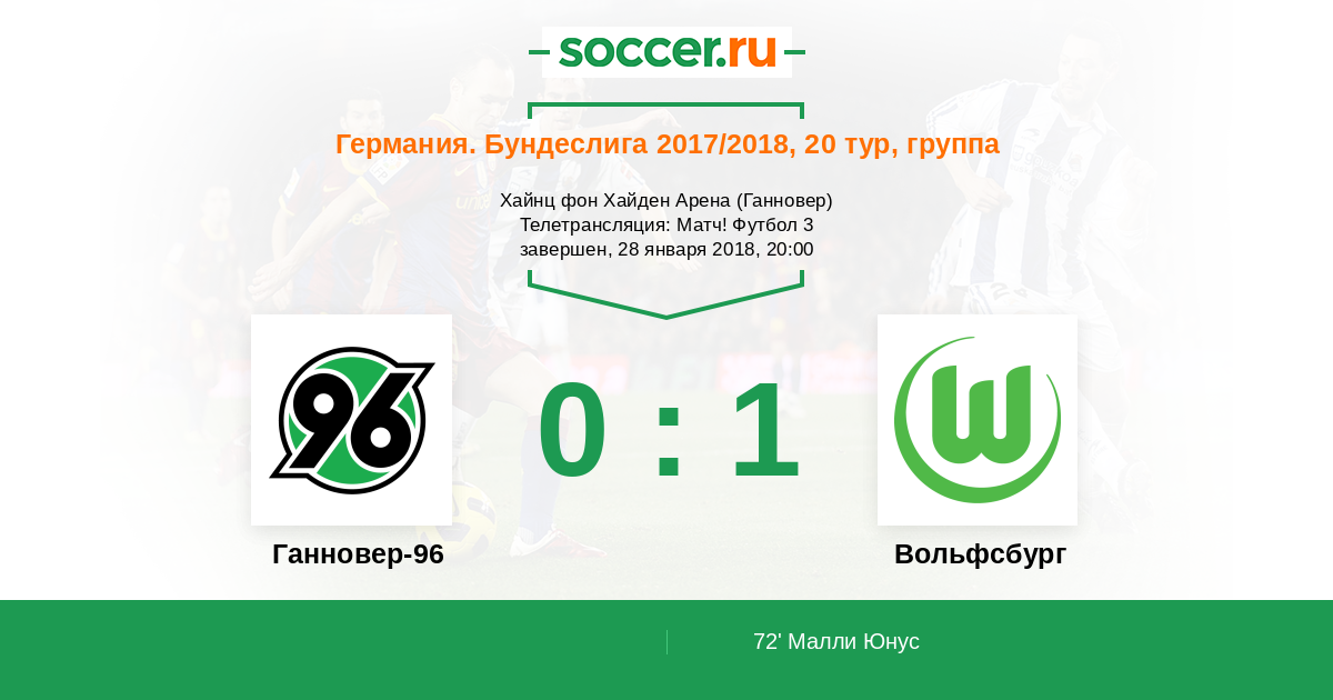 Протокол матча Ганновер-96 против Вольфсбург