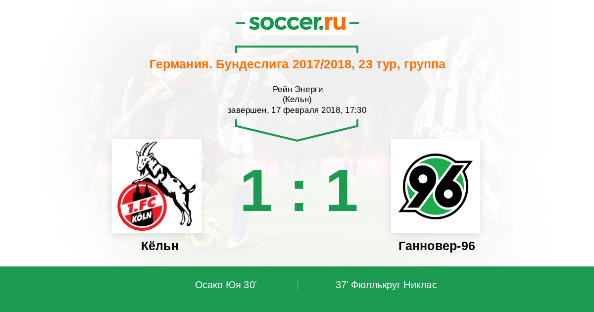 Протокол матча Кёльн против Ганновер-96