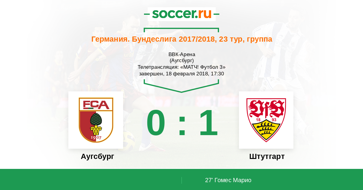 Протокол матча Аугсбург против Штутгарт