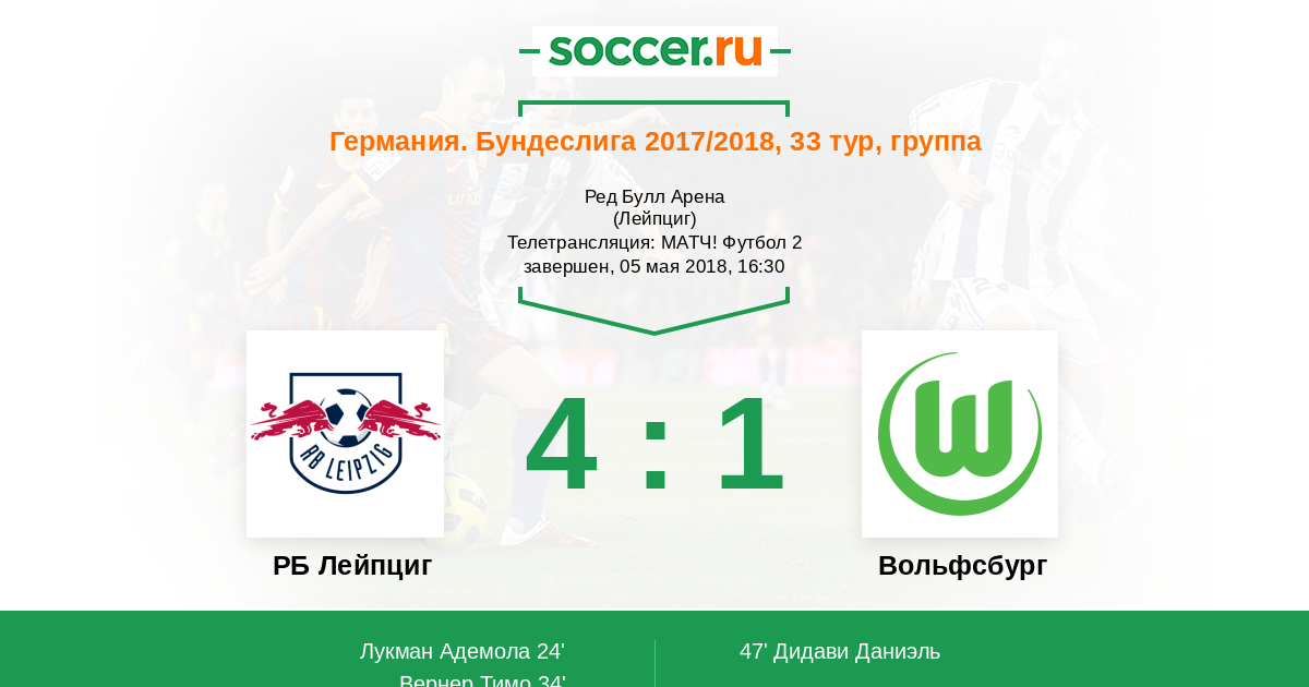 Протокол матча РБ Лейпциг против Вольфсбург