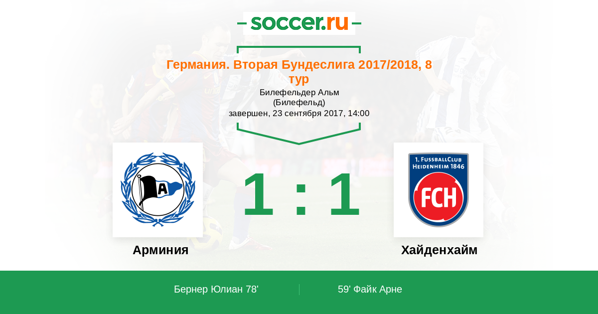 Протокол матча Арминия против Хайденхайм