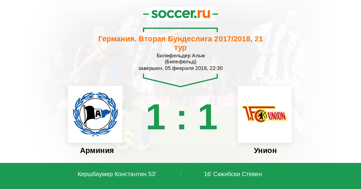 Протокол матча Арминия против Унион