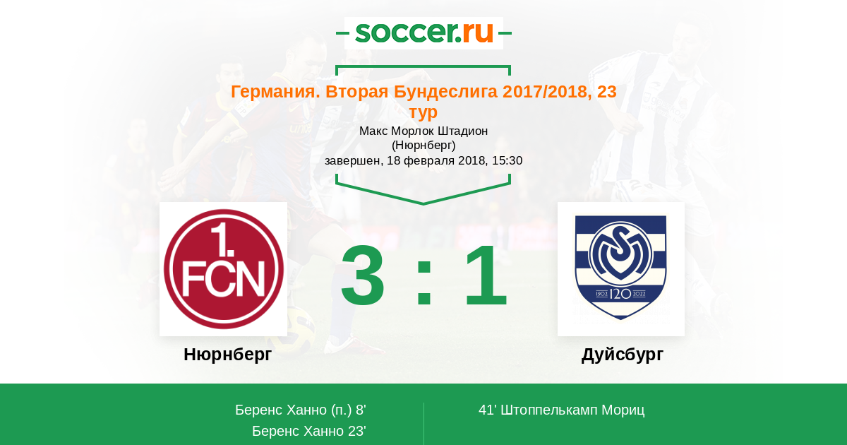 Протокол матча Нюрнберг против Дуйсбург