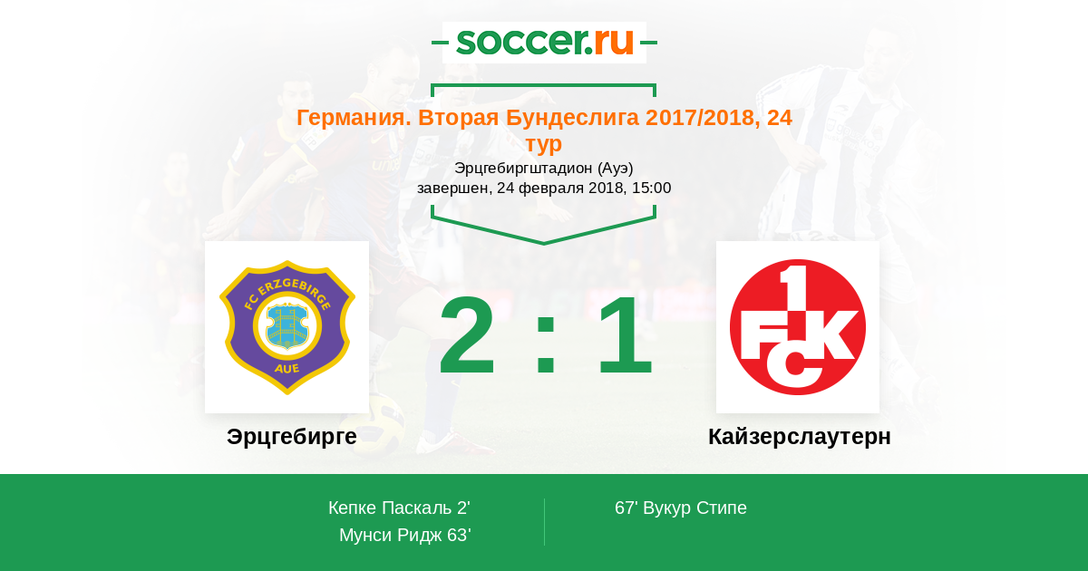 Протокол матча Эрцгебирге против Кайзерслаутерн