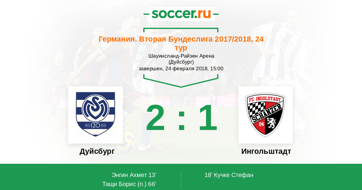 Протокол матча Дуйсбург против Ингольштадт