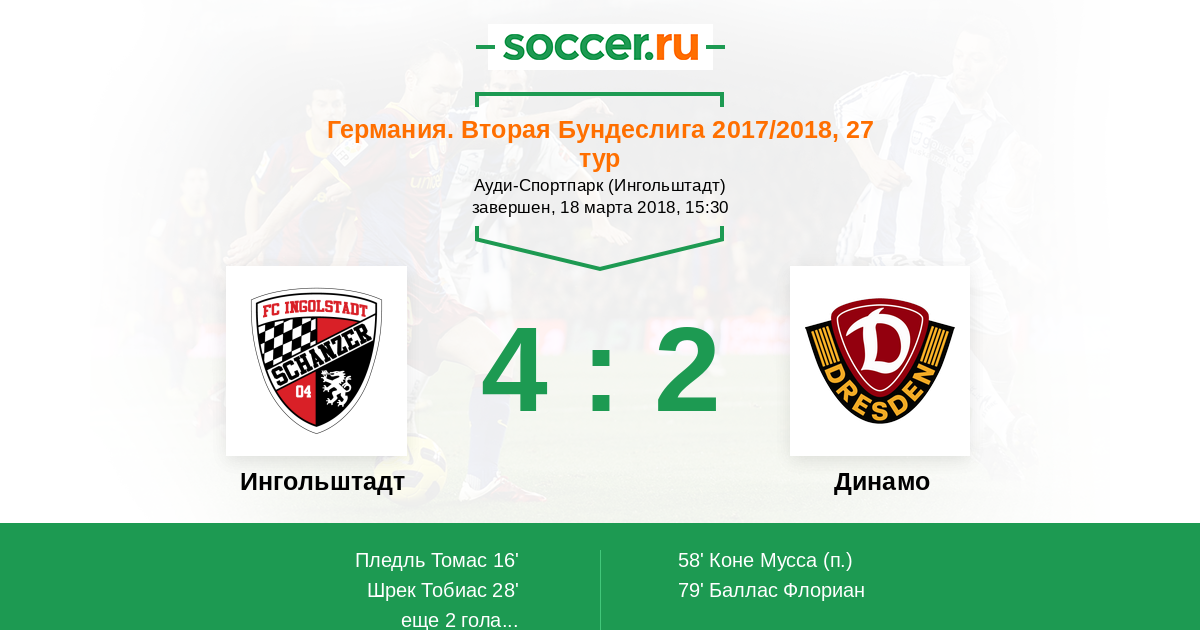 Протокол матча Ингольштадт против Динамо