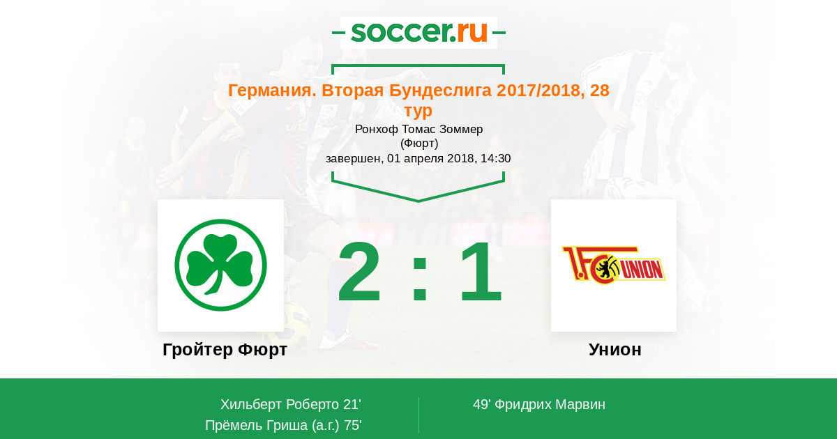 21' (1:0) Хильберт Роберто (19) (Виттек Максимилиан (3))