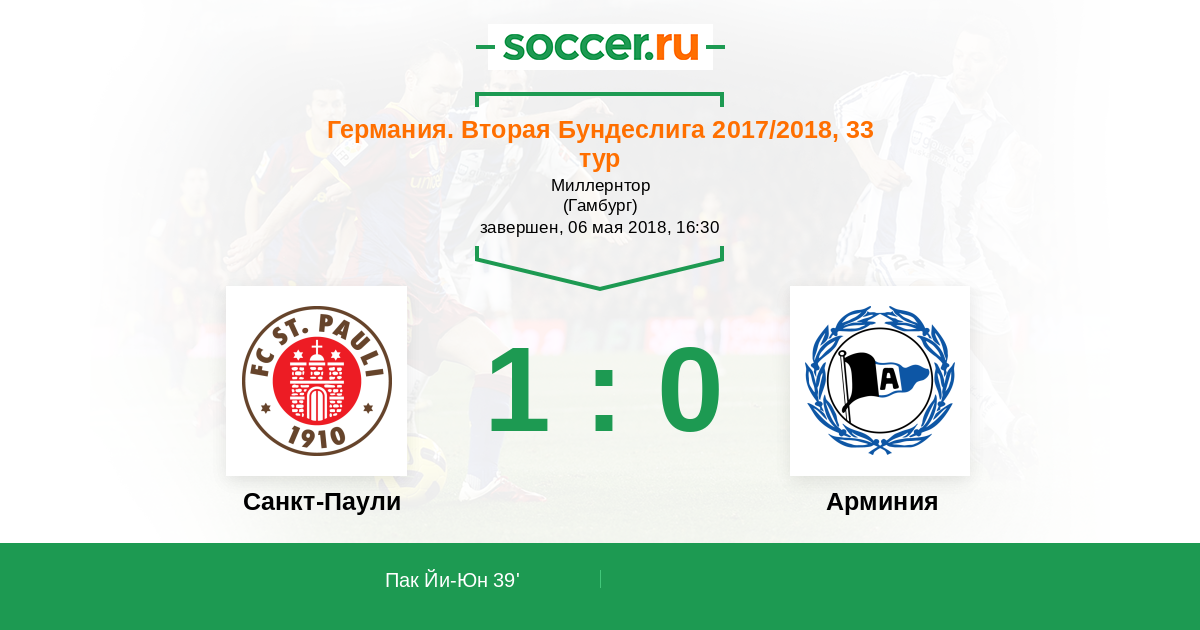 39' (1:0) Пак Йи-Юн (39) (Нойдекер Ричард (20))