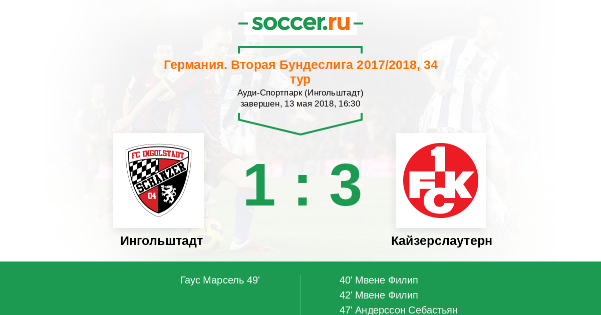 Протокол матча Ингольштадт против Кайзерслаутерн