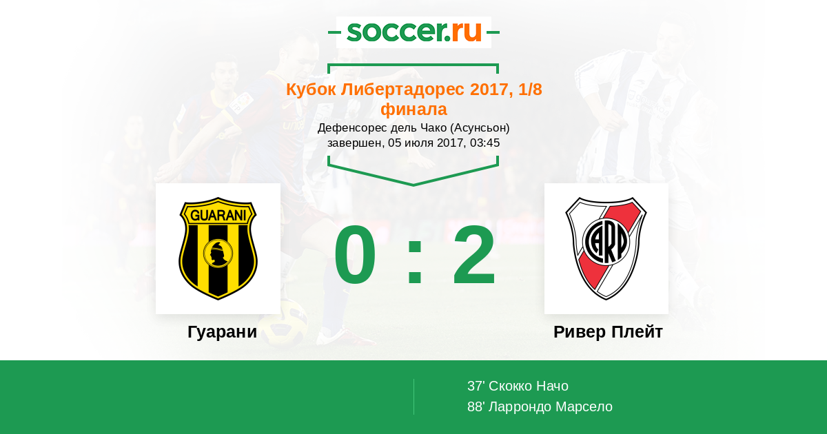 Протокол матча Гуарани против Ривер Плейт