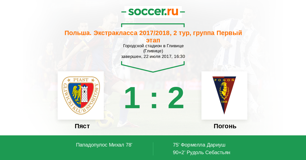 Протокол матча Пяст против Погонь