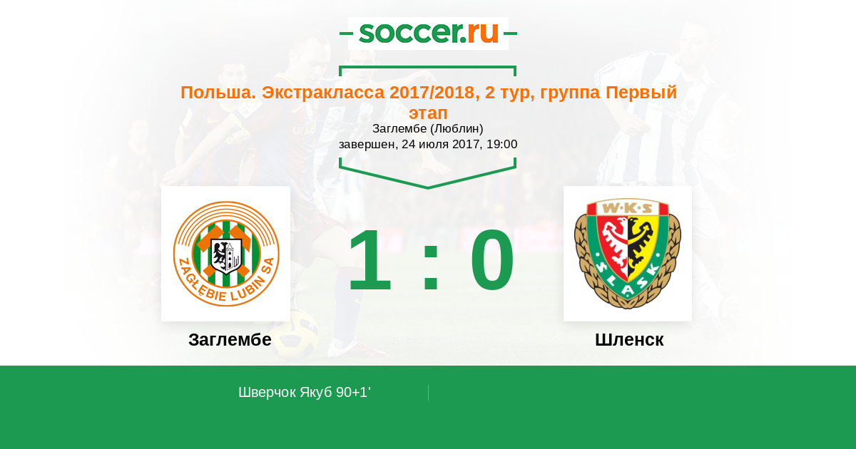 Протокол матча Заглембе против Шленск