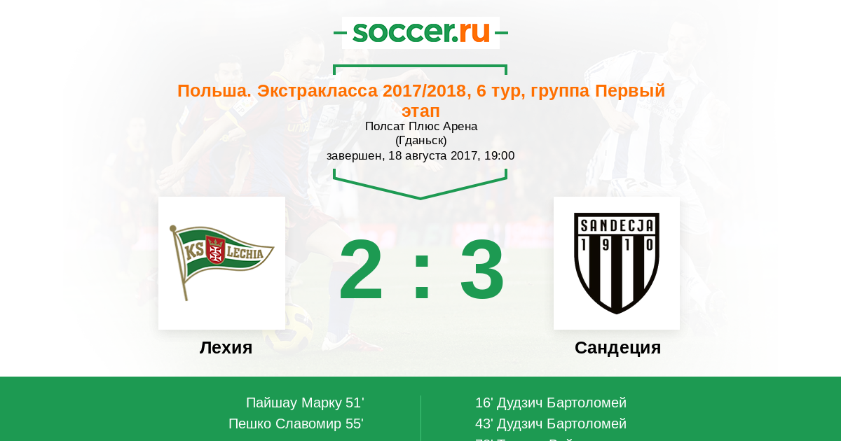 Протокол матча Лехия против Сандеция