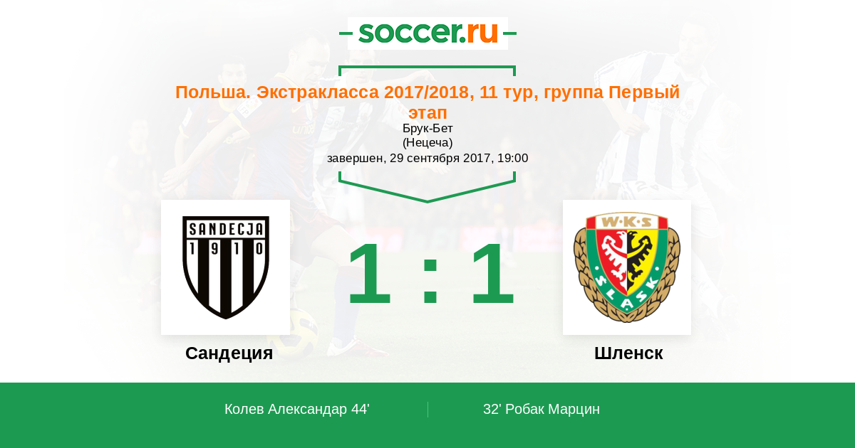 Протокол матча Сандеция против Шленск