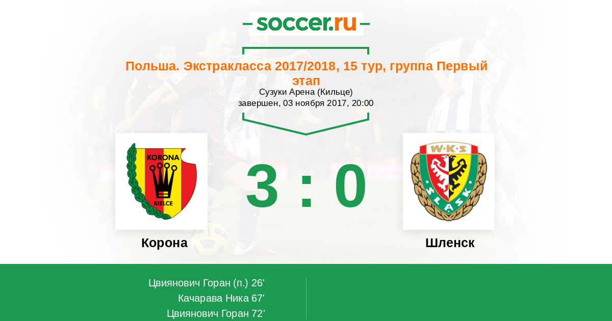 Протокол матча Корона против Шленск