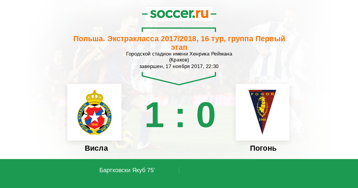Протокол матча Висла против Погонь