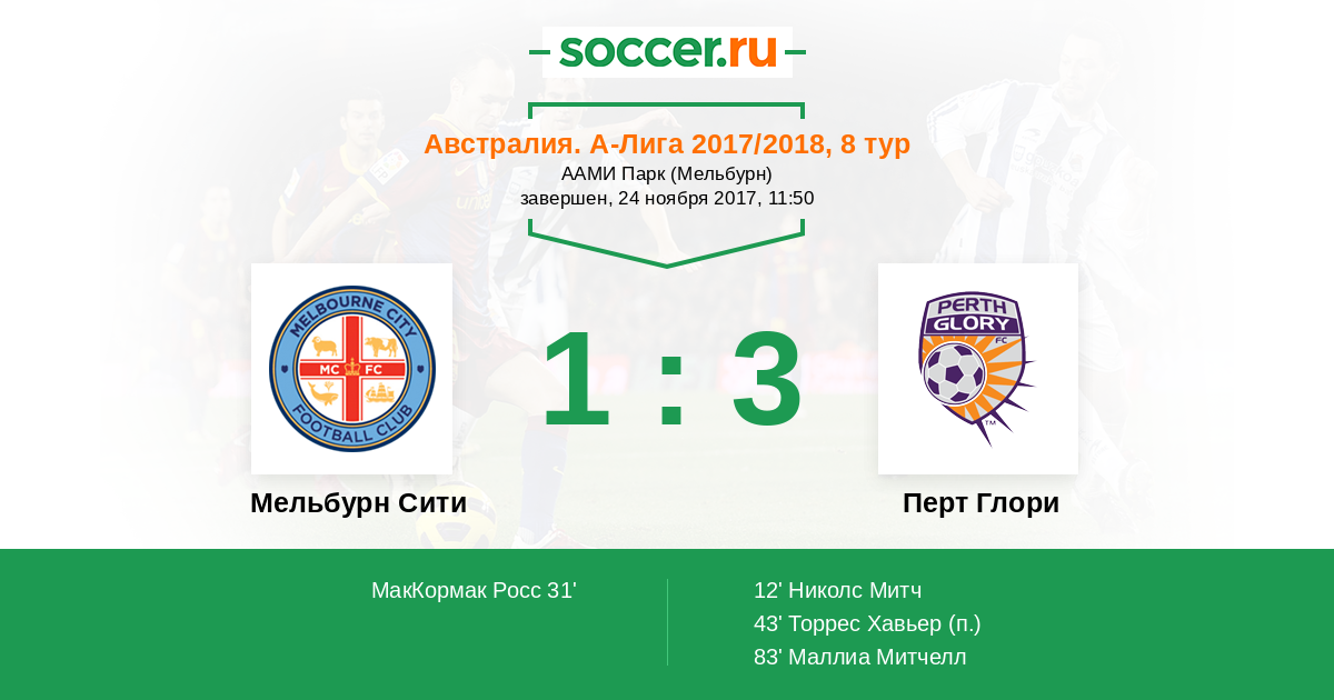 Протокол матча Мельбурн Сити против Перт Глори