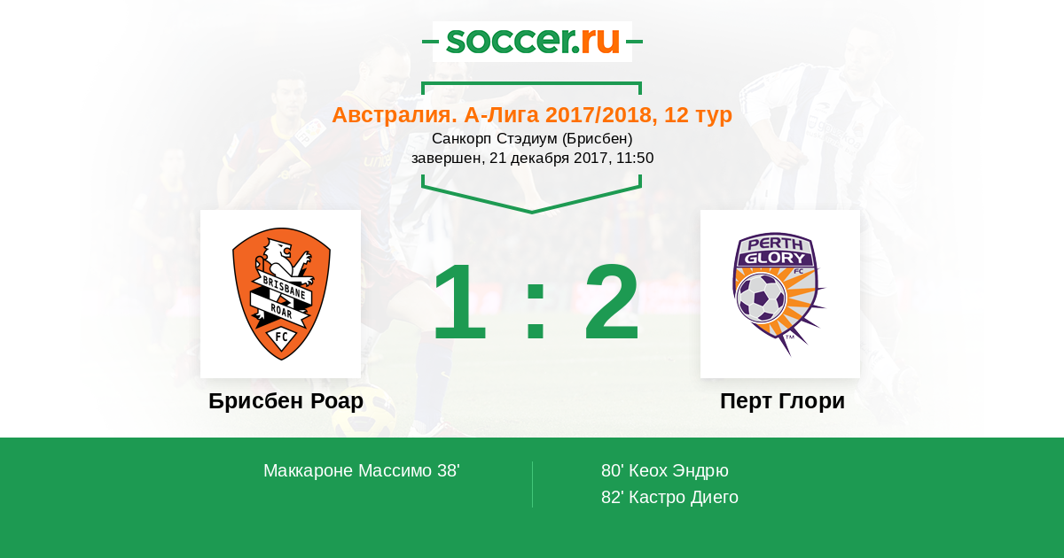 Протокол матча Брисбен Роар против Перт Глори