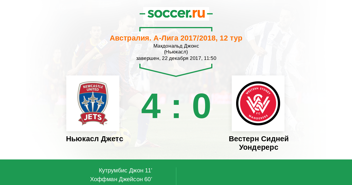 Протокол матча Ньюкасл Джетс против Вестерн Сидней Уондерерс