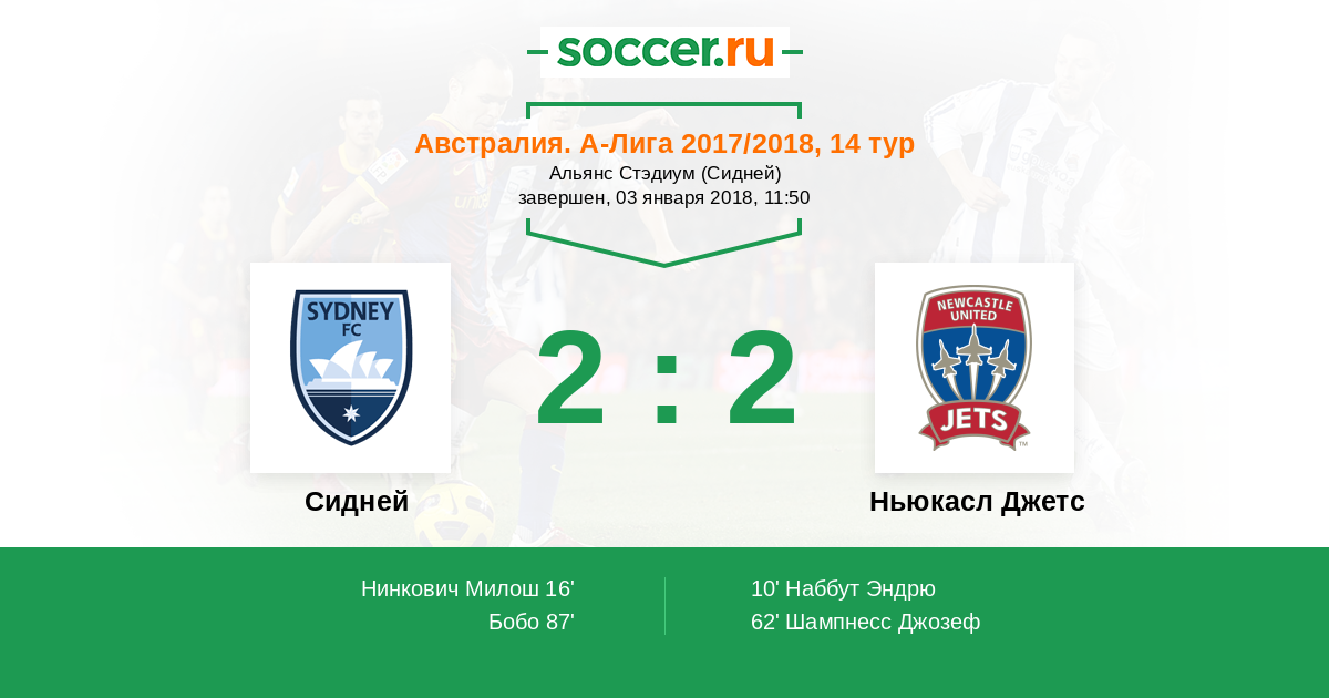 Протокол матча Сидней против Ньюкасл Джетс