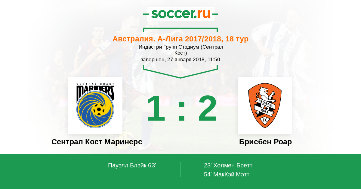 Протокол матча Сентрал Кост Маринерс против Брисбен Роар