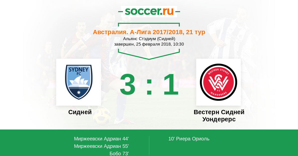 Протокол матча Сидней против Вестерн Сидней Уондерерс