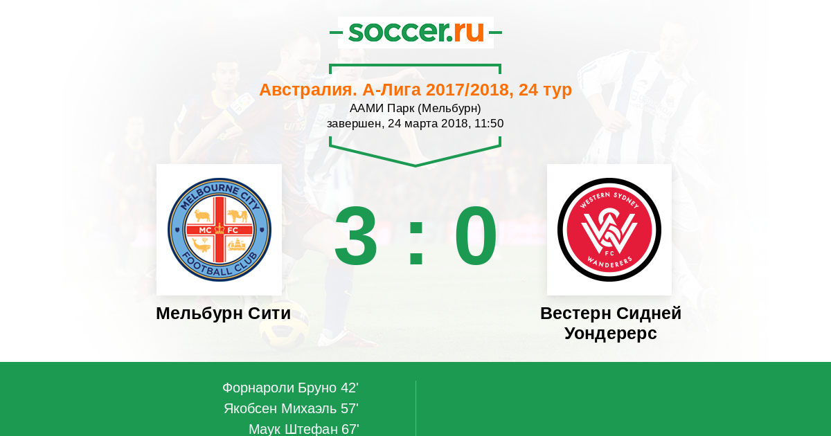 Протокол матча Мельбурн Сити против Вестерн Сидней Уондерерс