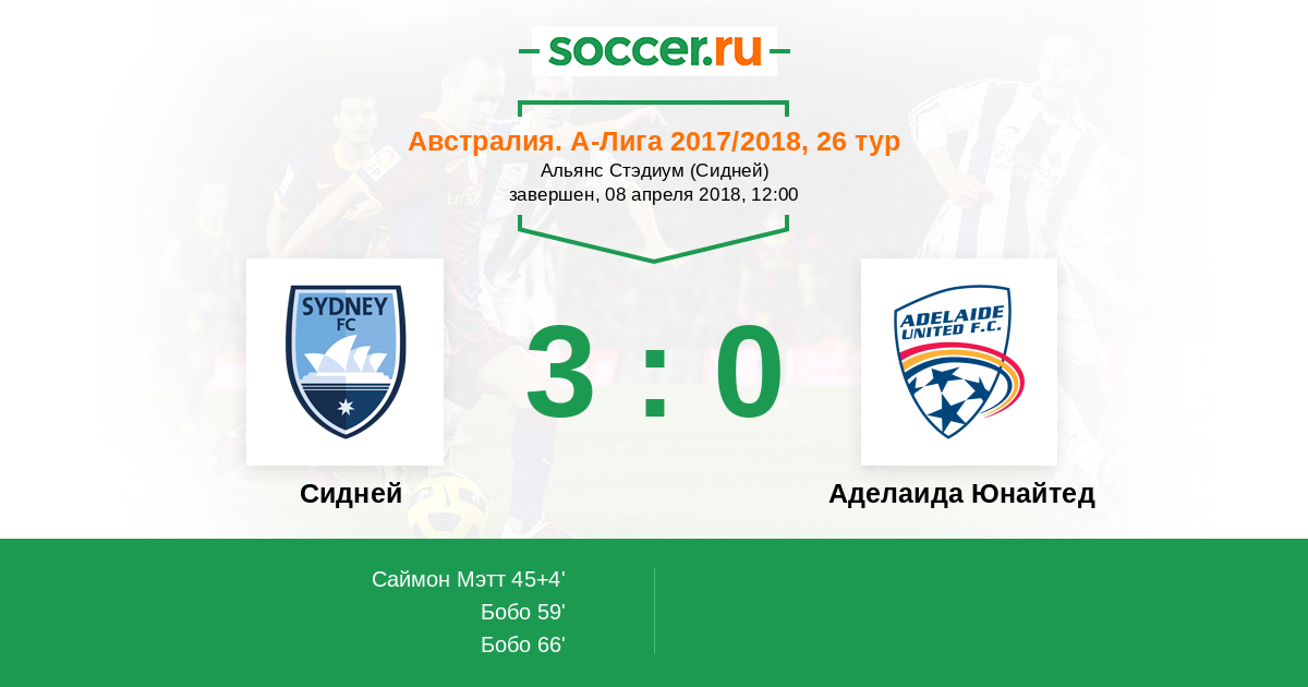 Протокол матча Сидней против Аделаида Юнайтед