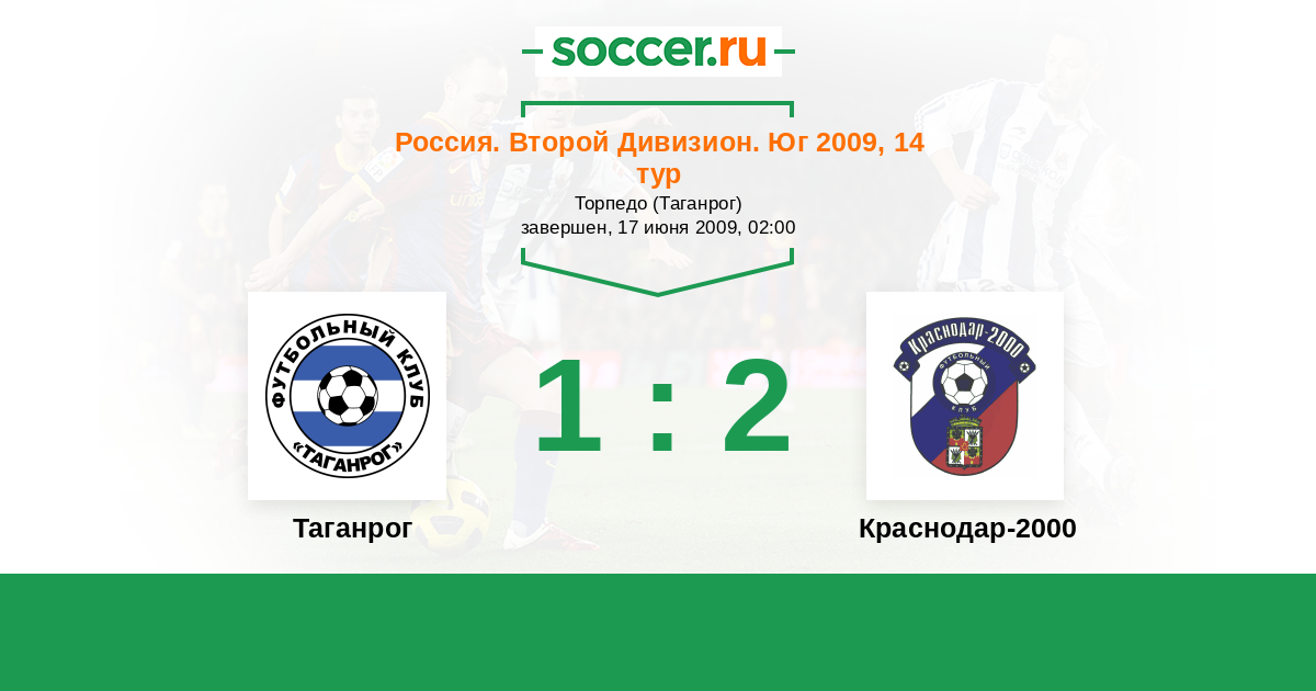 Россия. Вторая лига. Группа 1 04.10.2009 Краснодар-2000 Логотип футбольный клуб Краснодар-2000 2:0 Логотип футбольный клуб Таганрог Таганрог