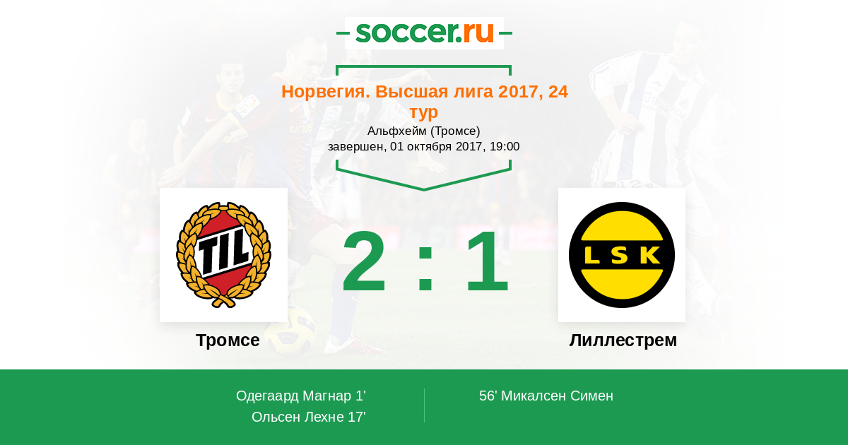 17' (2:0) Ольсен Лехне (10) (Педерсен Мортен Гамст (7))