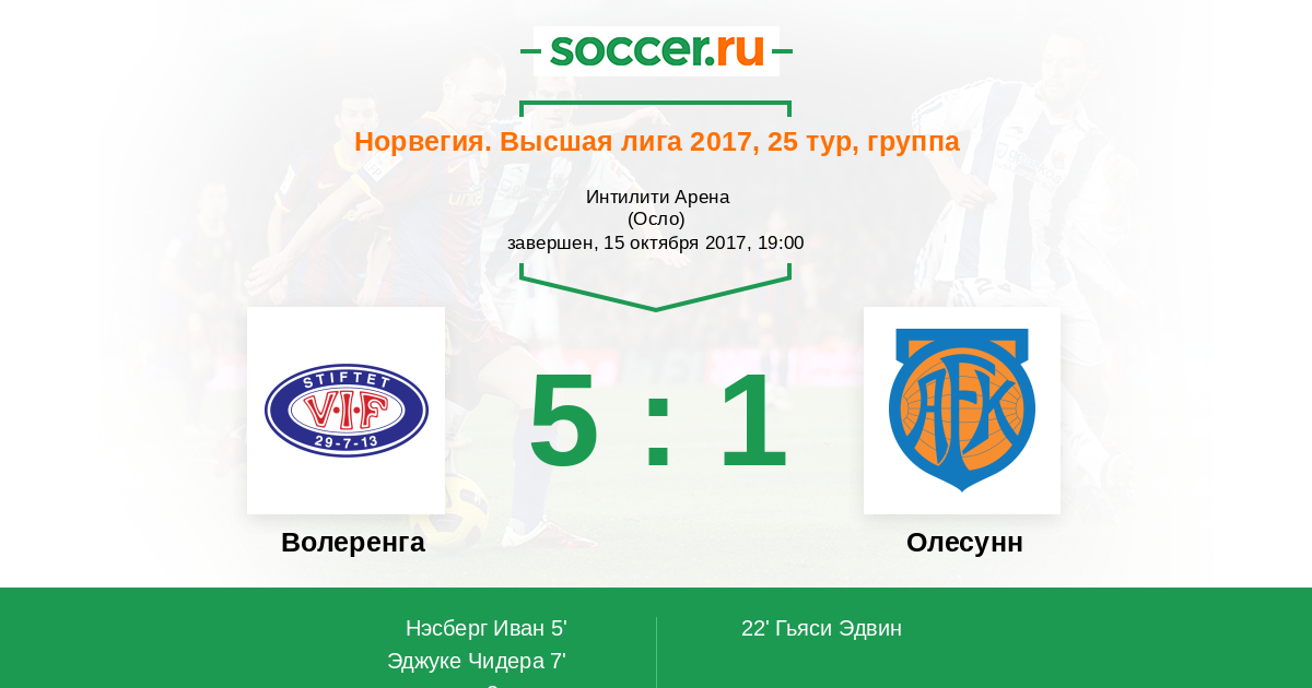 Протокол матча Волеренга против Олесунн