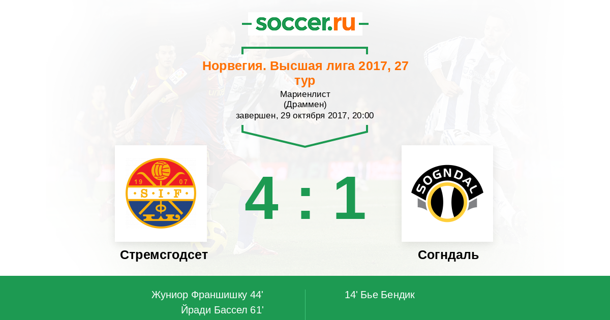 14' (0:1) Бье Бендик (18) (Мандич Станиша (77))