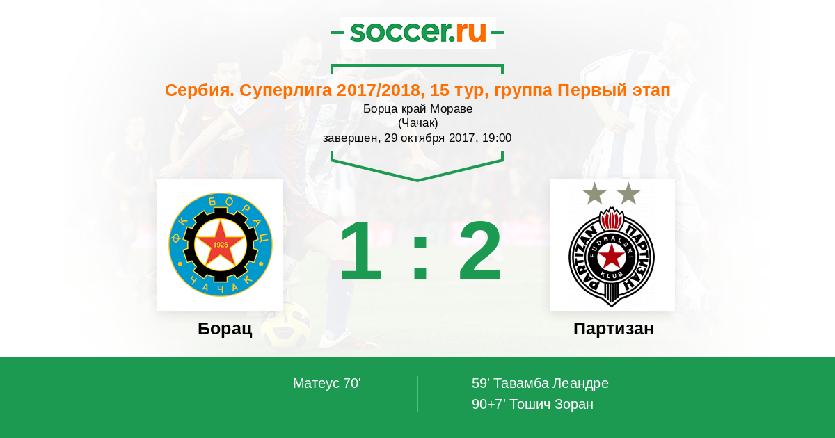 Протокол матча Борац против Партизан