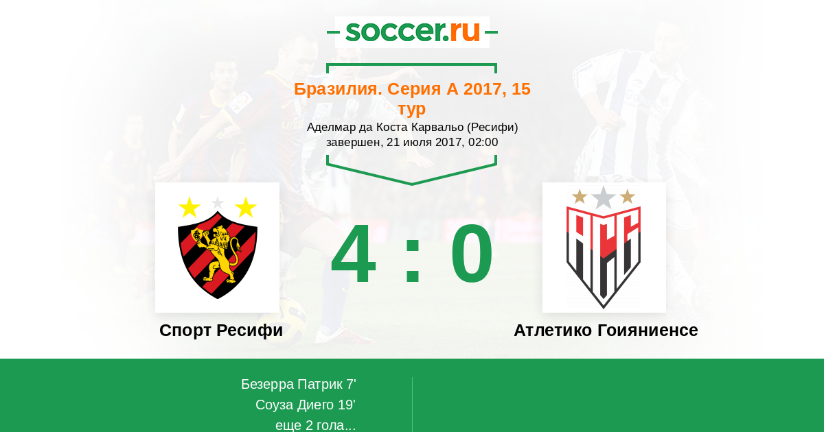 Протокол матча Спорт Ресифи против Атлетико Гоияниенсе
