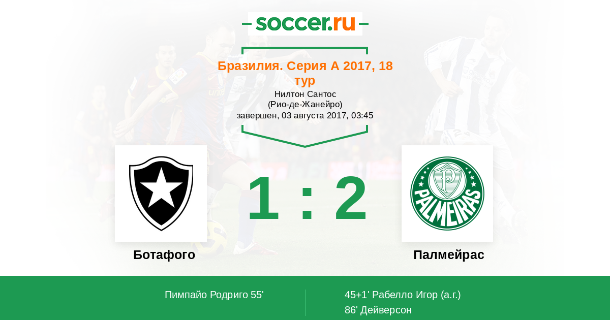 Протокол матча Ботафого против Палмейрас