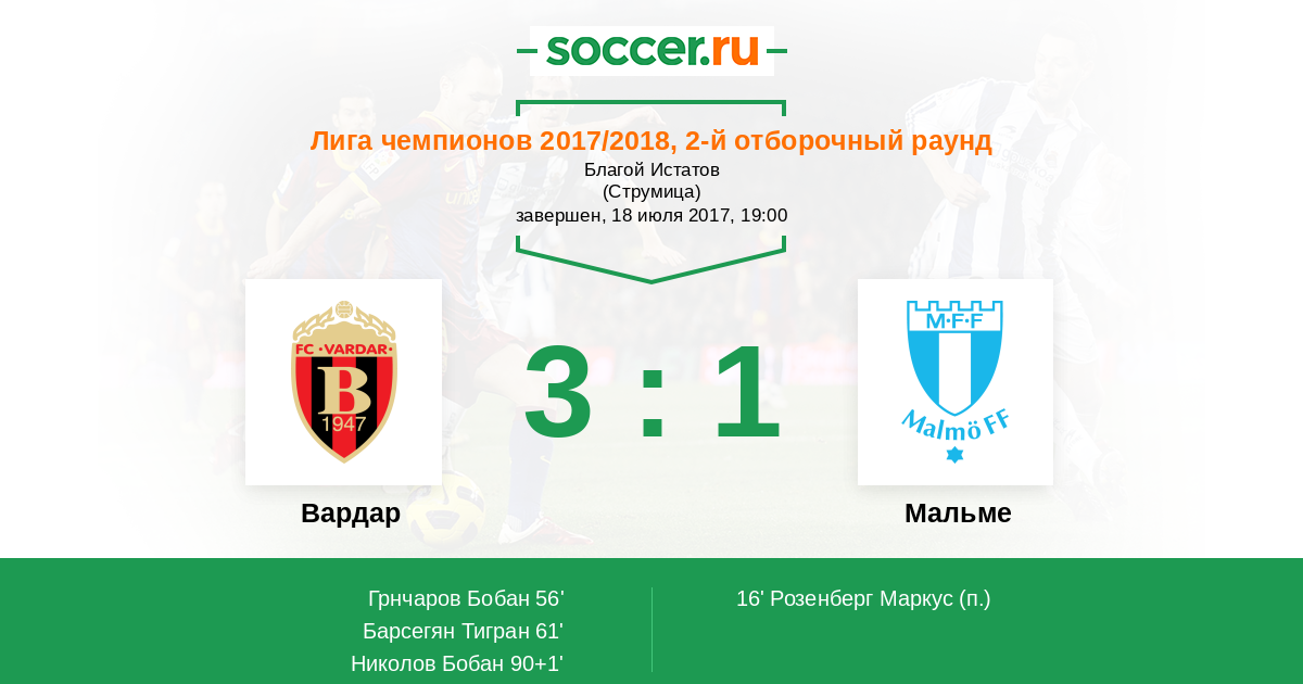 Протокол матча Вардар против Мальме