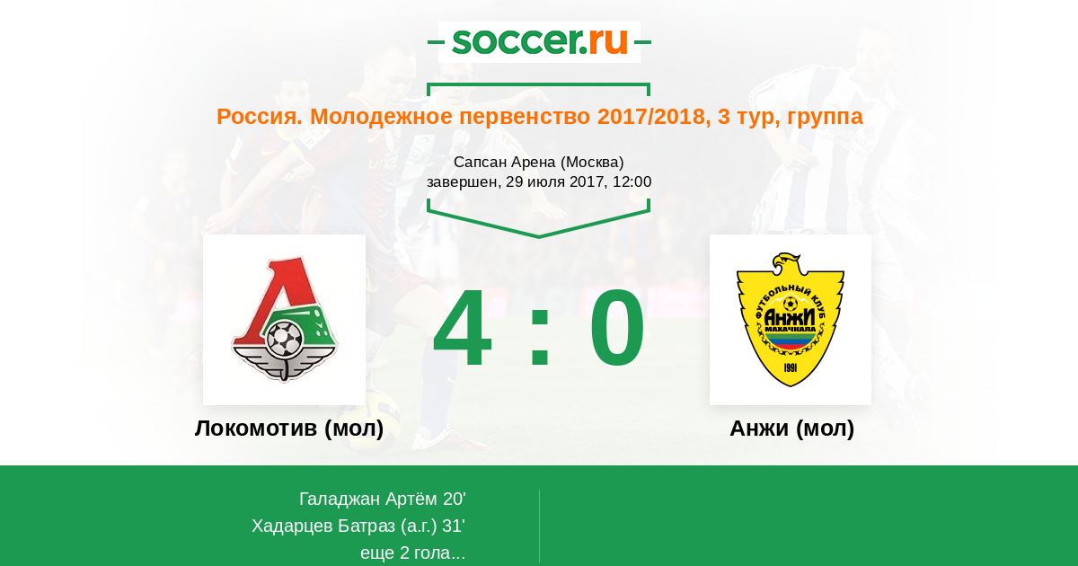 Протокол матча Локомотив (мол) против Анжи (мол)