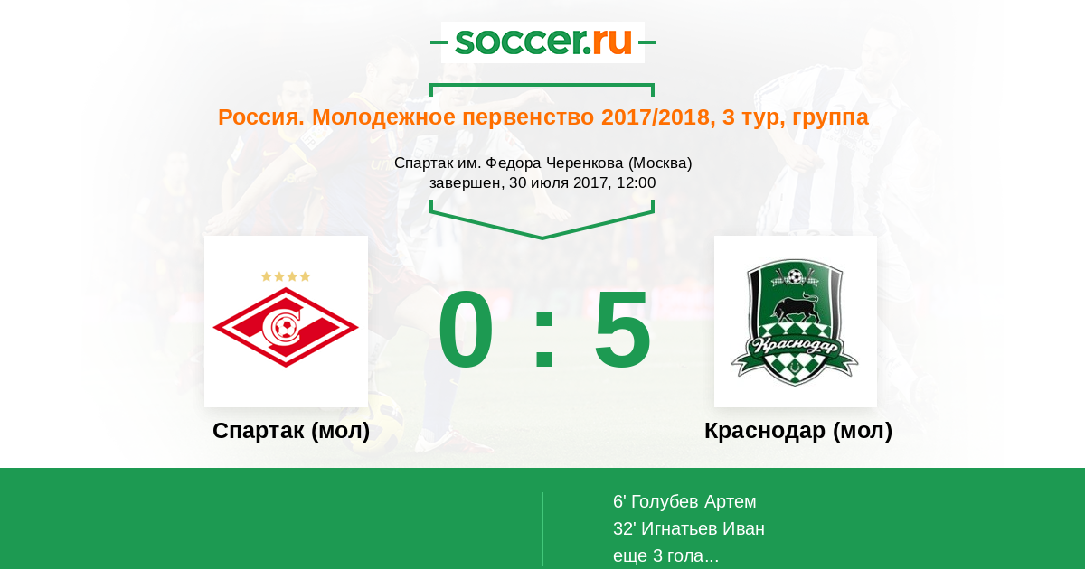 Протокол матча Спартак (мол) против Краснодар (мол)