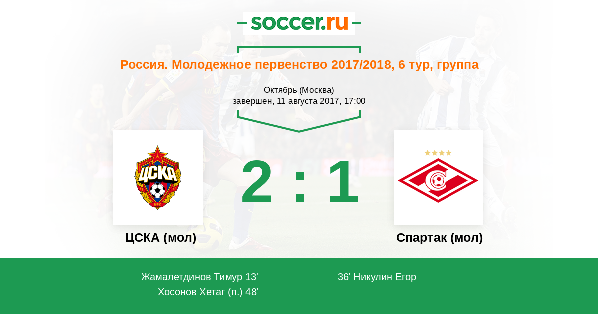 Протокол матча ЦСКА (мол) против Спартак (мол)