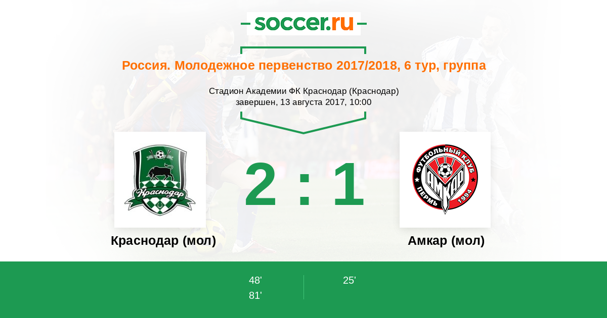 Протокол матча Краснодар (мол) против Амкар (мол)