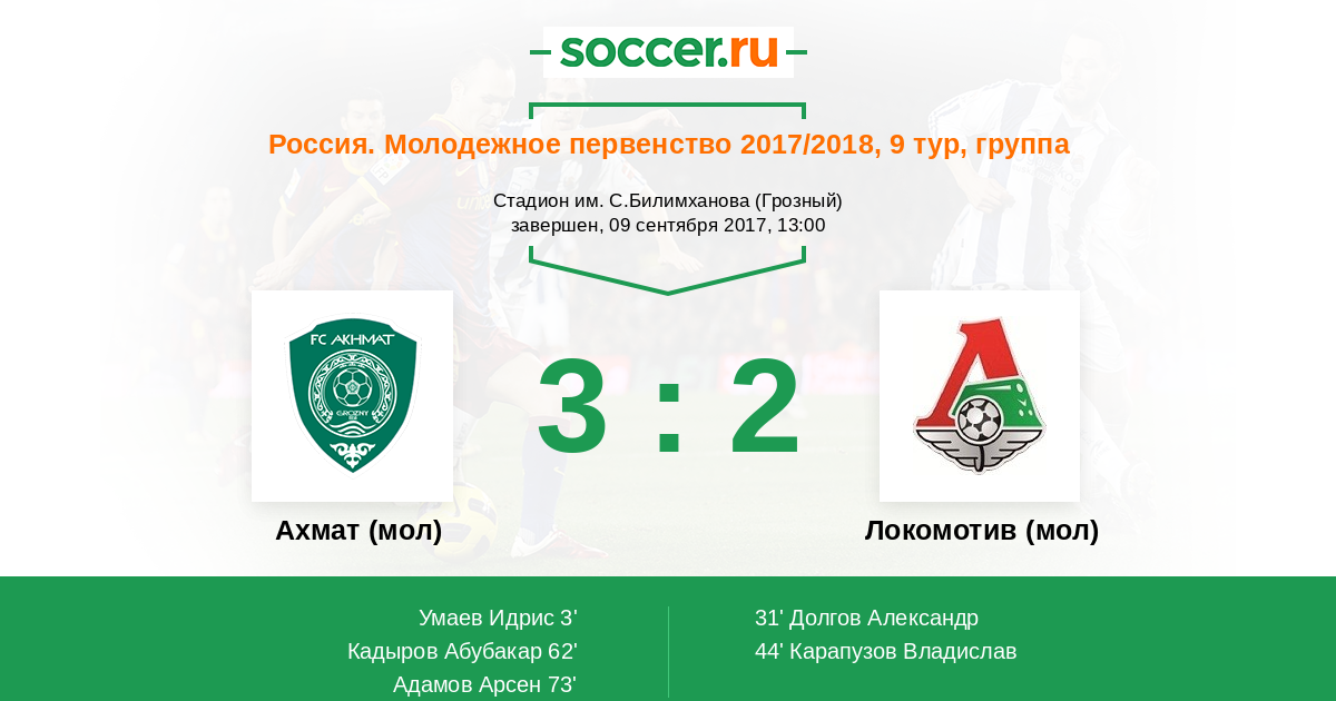 Протокол матча Ахмат (мол) против Локомотив (мол)