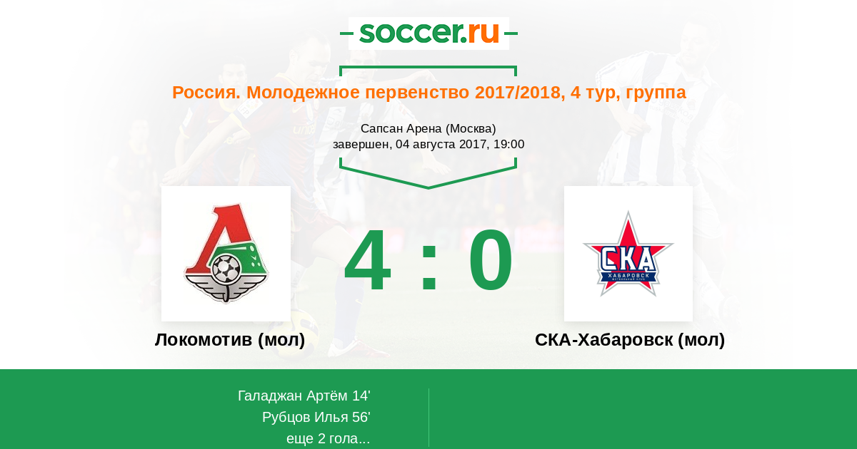 Протокол матча Локомотив (мол) против СКА-Хабаровск (мол)