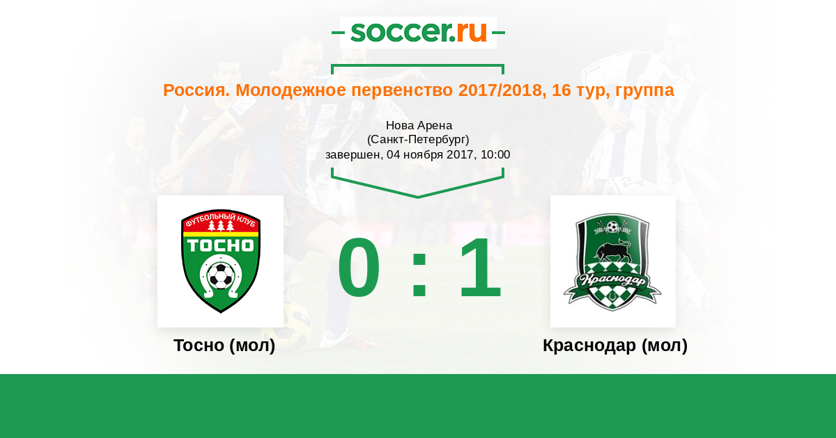 История матча Тосно (мол) против Краснодар (мол)