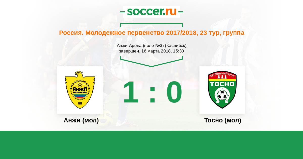 История матча Анжи (мол) против Тосно (мол)