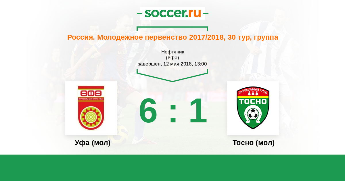История матча Уфа (мол) против Тосно (мол)