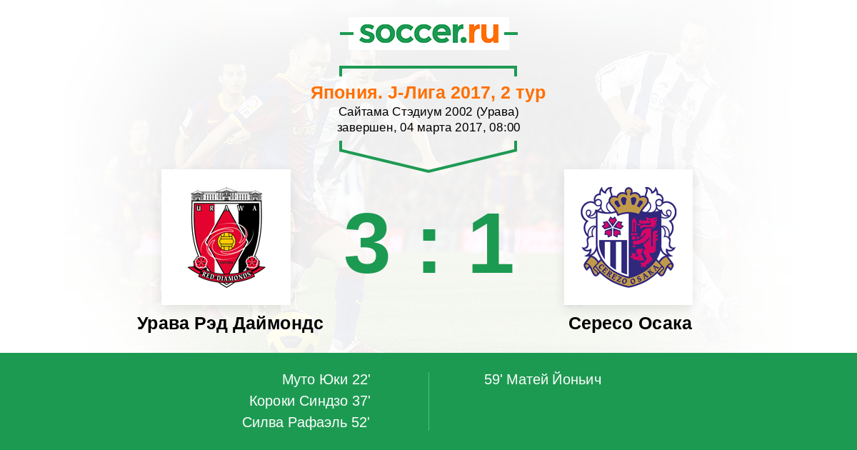Протокол матча Урава Рэд Даймондс против Сересо Осака